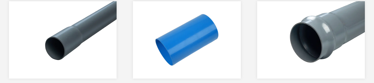 Труба ПВХ-У: Труба из непластифицированного поливинилхлорида, наиболее распространенный тип, в основном используемый в дренажных системах и электропроводках.